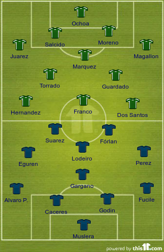 São duas das selecções que mais expectativa levantam. E com razão. Equipas ofensivas, repletas de muito talento (jovem, particularmente), têm o desafio de recuperar melhores dias. O Uruguai, primeiro bicampeão do Mundo, há muito que deixou de contar nestas provas, mas com um dupla de ataque formada por Diego Forlan e Luis Suarez, tem direito a sonhar. Do Uruguai esperamos uma tipica formação em 4-4-2, combativa mas com um toque de classe no sector ofensivo. Sem ainda algumas das suas maiores promessas (como Aguiersgaray ou Barreto), o conjunto celeste apostará numa defesa a quatro, à frente do genial Muslera, com os laterais ofensivos Maxi e Alvaro Pereira junto à dupla Godin e Caceres. O meio-campo mistura o talento de Lodeiro e Cavani à força de Eguren e Lugano. Um onze de respeito ao qual Javier Aguirre, o lider dos aztecas, terá de contrapor com muita juventude. Uma selecção mexicana repleta de energia à espera de um desafio à altura. Abrem contra os anfitriões e isso pode dar-lhes vantagem moral. A veterania de Blanco, Guille Franco, Marquez e Salcido com a tremenda juventude de génios em potência como Ochoa, Guardado, Juarez, Moreno, dos Santos ou Carlos Vela. Poucas equipas podem entusiasmar tanto como a mexicana. Resta saber se o desafio pertence a esta edição ou se esta geração está destinada a brilhar no Brasil.